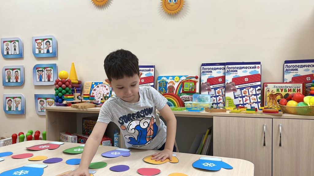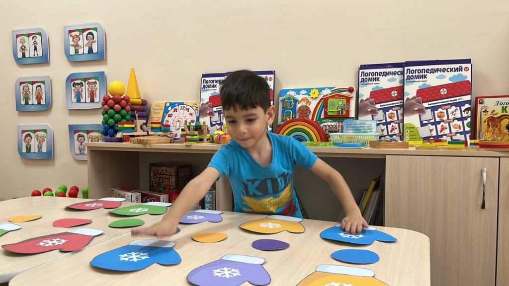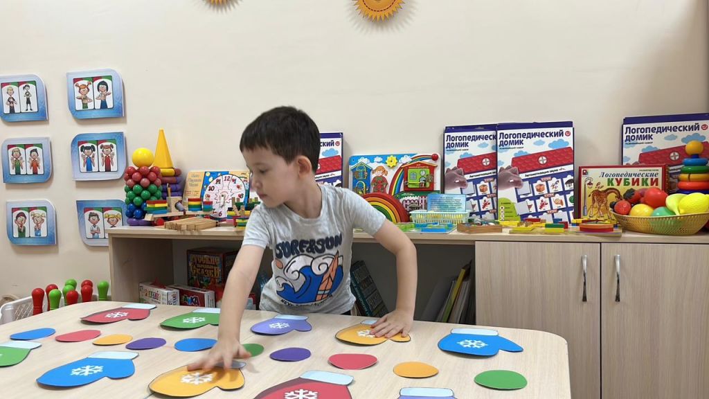 Бүгінгі логопедиялық сабақта балалар артикуляциялық және тыныс гимнастикасын белсенді түрде орындады, сөйлеу аппаратының дұрыс жұмысын және тынысты басқару қабілетін дамытты. Ойын бөлігінде балалар дидактикалық «Шұлыққа жұп тап» ойынында қатысты, онда сигнал бойынша бірдей түсті қолғаптарға қолдарын бір мезгілде қоюлары керек болды. Бұл ойын назарды, реакция жылдамдығын және концентрацияны дамытуға ықпал етті. Сабақ динамикалық және нәтижелі өтті.