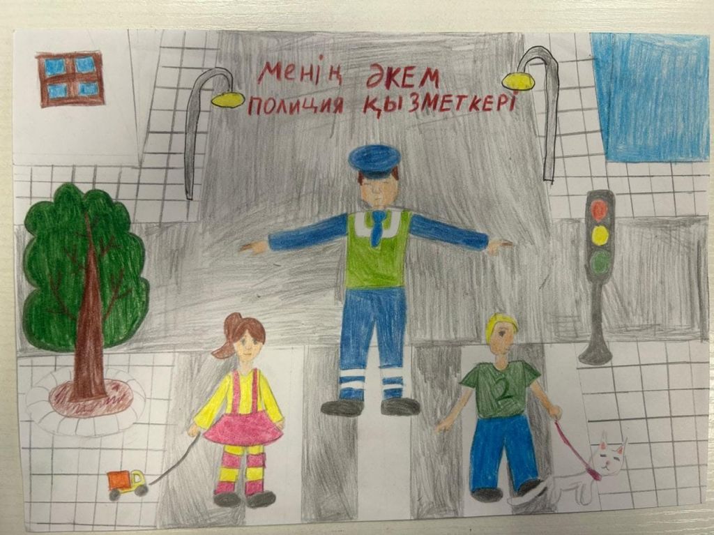 Ақмола облысы білім басқармасының «Әдістемелік орталығы» КММ-нің мектеп жасына дейінгі балалар арасында «Заң және тәртіп» идеологемасы аясында өткізілген «Менің әкем – полицей» атты көрме туралы ережесіне сәйкес, ересек және мектепалды топ тәрбиеленушілері арасында сурет көрмесі ұйымдастырылды.