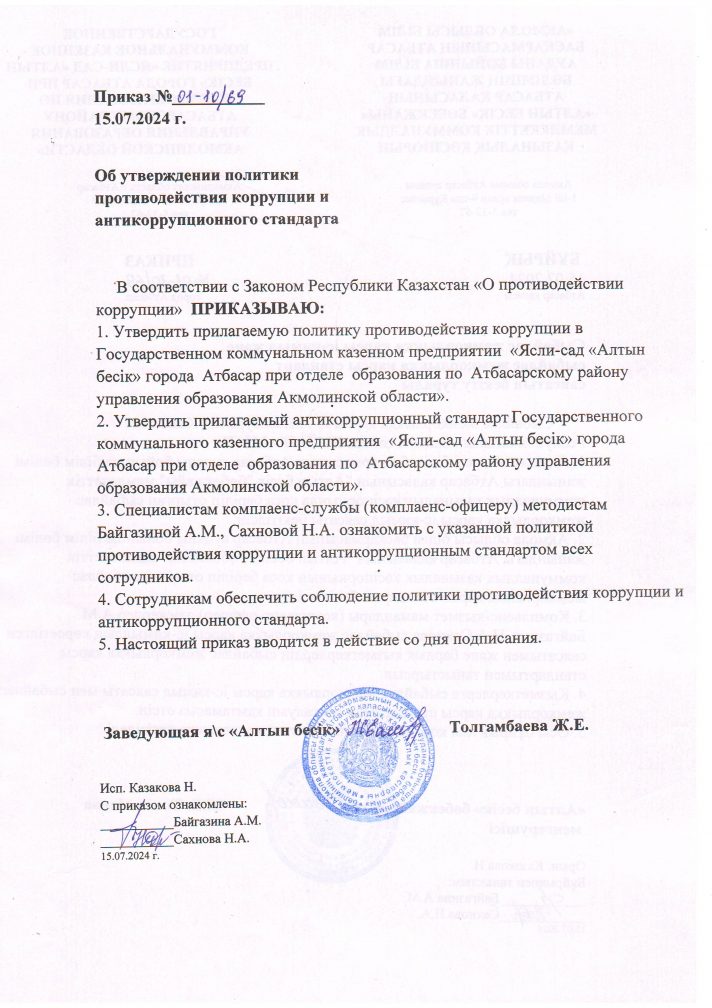 Сыбайлас жемқорлыққа қарсы іс-қимыл және сыбайлас жемқорлыққа қарсы стандарт саясатын бекіту туралы