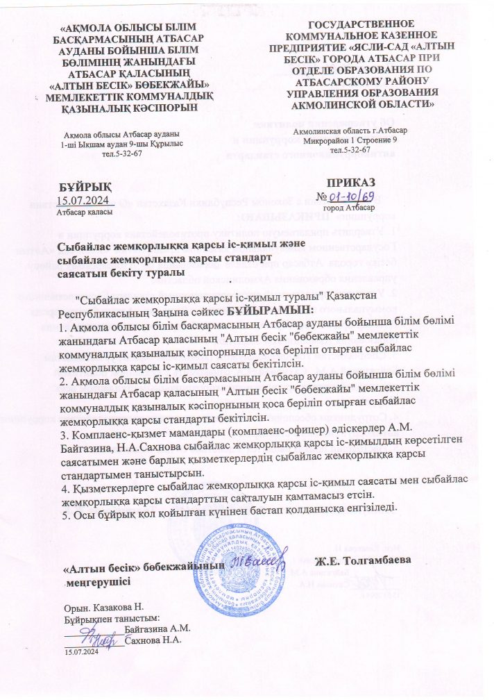 Государственное  коммунальное казенное предприятие «Ясли-сад «Алтын бесік» города Атбасар при отделе образования по Атбасарскому району управления образования Акмолинской области»