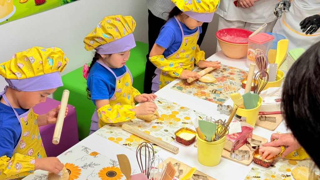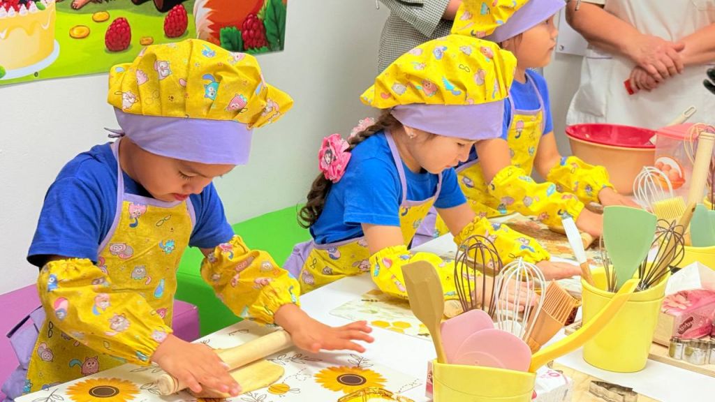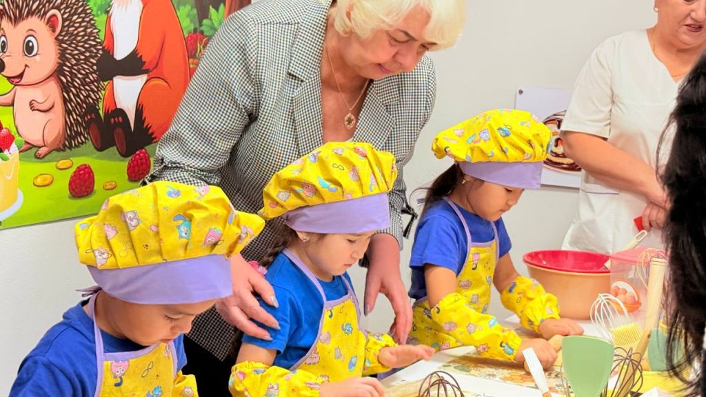 Педагог Жакубаева С. К. қонақтарға мектепалды тобы тәрбиеленушілерімен бірге «Тәтті тоқаштар» атты шеберлік сыныбын ұсынды. Балалар қамырмен өздігінен және қызығушылықпен жұмыс жасап, ұқыптылық пен дербестік танытты. «Достық наны» орталығының заманауи жабдықтарының арқасында бүлдіршіндер өз қолдарымен хош иісті тәтті тоқаш пісіріп, іс-шара қонақтарын қуантты.