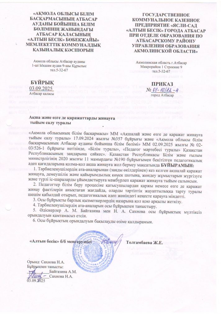 Государственное  коммунальное казенное предприятие «Ясли-сад «Алтын бесік» города Атбасар при отделе образования по Атбасарскому району управления образования Акмолинской области»