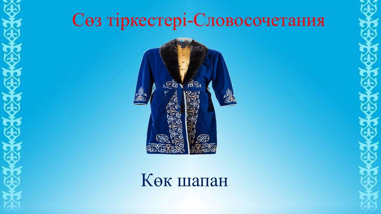 «Тілге бойлау» жобасын жүзеге асыру мақсатында ата-аналарға, балаларға және педагогтарға арналған «Ұлттық киімдер» тақырыбындағы сөздік минимум
