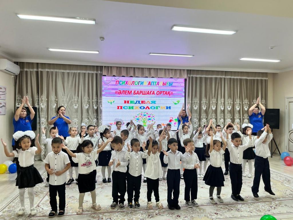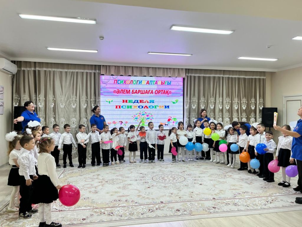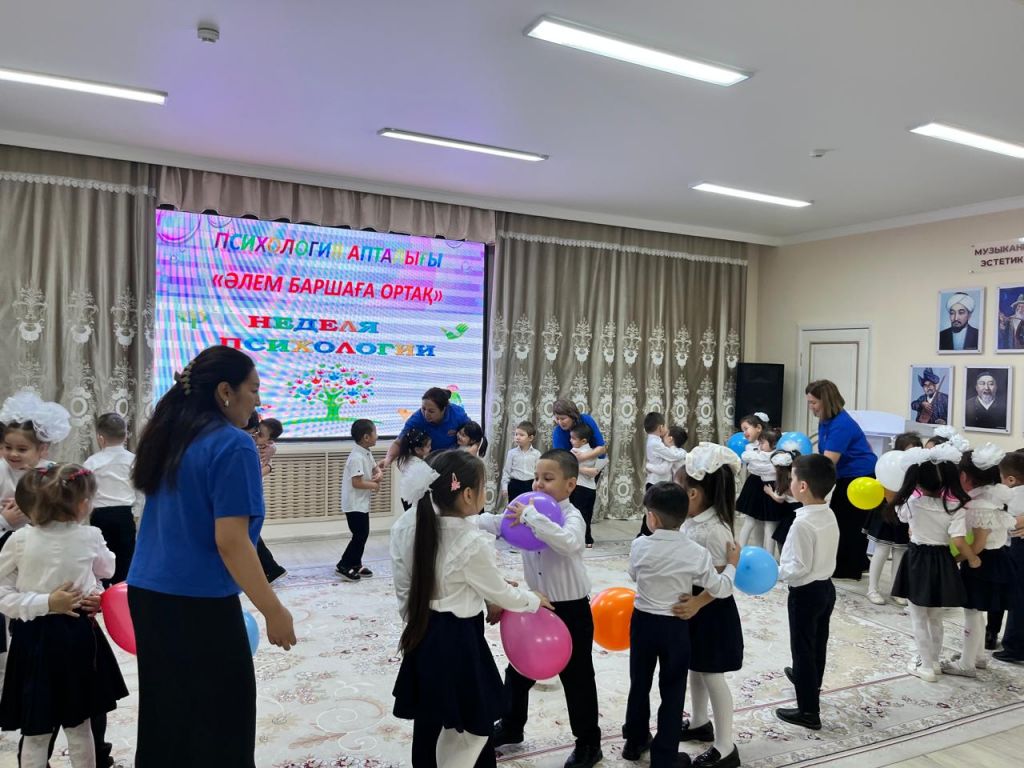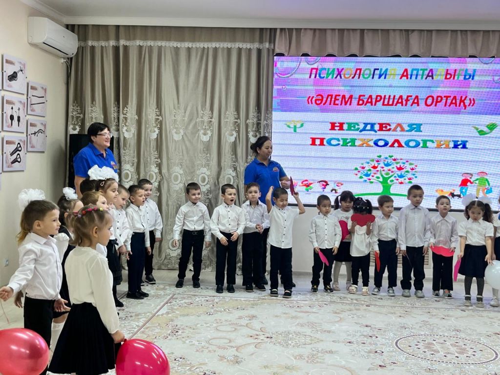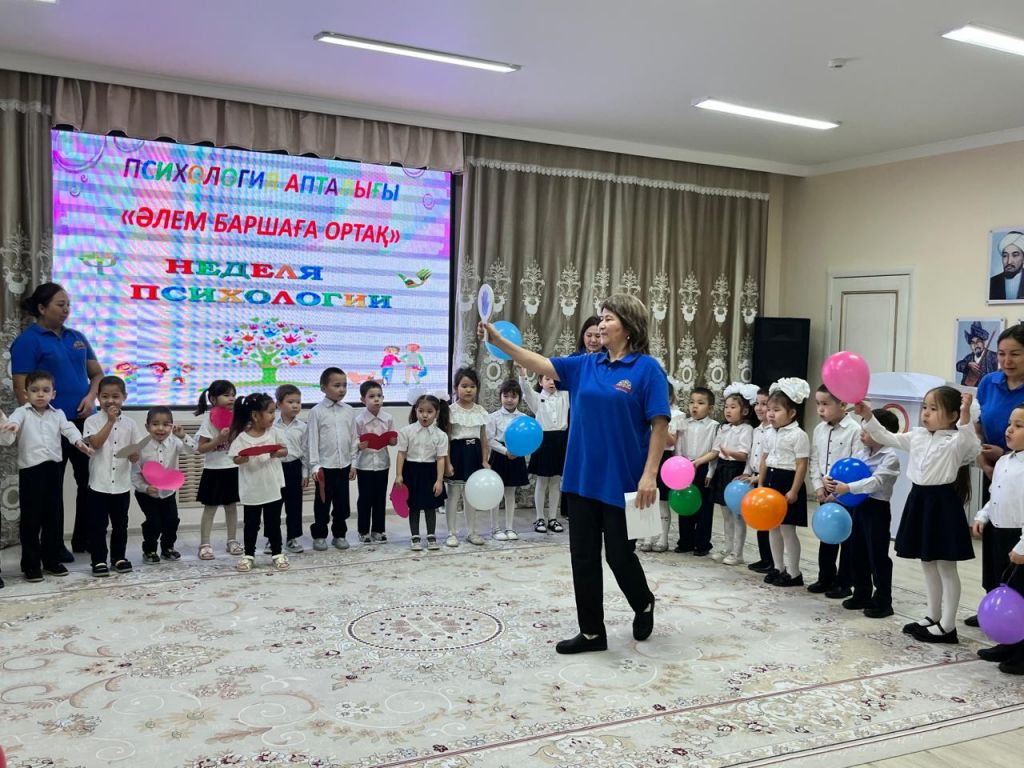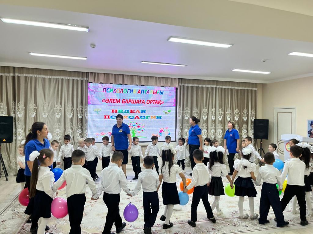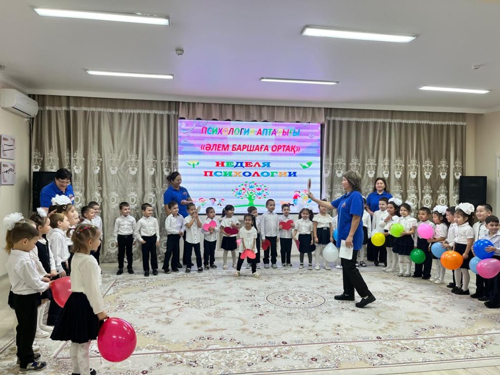 Мақсаты: Білім беру процесінің барлық қатысушылардың , тәрбиеленушілердің, педагогтардың, ата- аналардың психологиялық денсаулығын қамтамасыз ету үшін жағдайлар жасау. Психолог қатысушыларға сәттілік тілей отырып, "Жие және шын жүрекпен күлімсірейміз" ұранымен бастады. Іс- шара барысында балалар бір- біріне жүрекшелер ұсынып мейрімділік сөздерін білдірді. Әрі қарай "Көңілді қолдар"" "Көңіл- күйді білдір"" "Достық шеңбері", "Досыңды құшақта" ойындарын қызығып ойнады. Педагогтар мен балалар "Достық шеңберімен жүріп, бір - бірлеріне жақсы көңіл- күй сыйлап, өлең айтып бйледі.