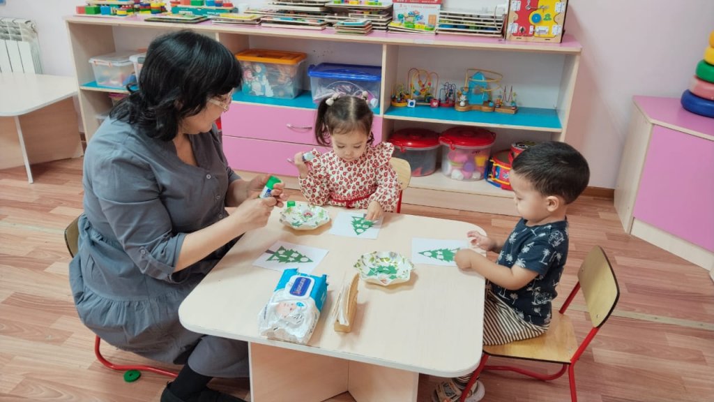 Кіші «Айналайын» тобында балалар жаңа жылдық шарды безендірді.
