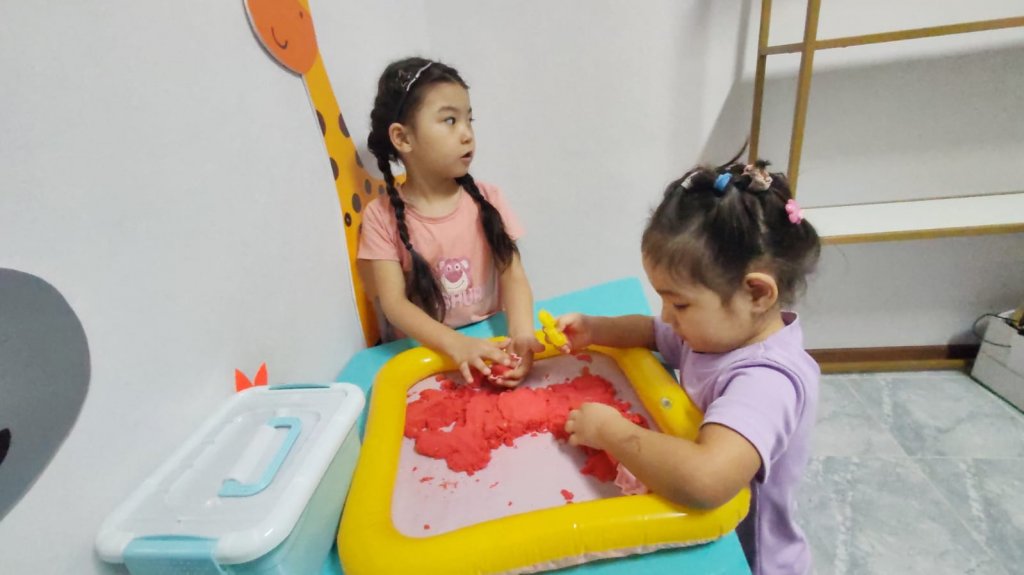 Балалар құммен ойнау арқылы өз қиялдарын дамытып, ұсақ моторикасын жетілдірді. Сабақ барысында олар түрлі пішіндер жасап, шығармашылық қабілеттерін көрсетті. Орталықтағы жұмыс балаларға ерекше қызығушылық пен жағымды көңіл күй сыйлады.