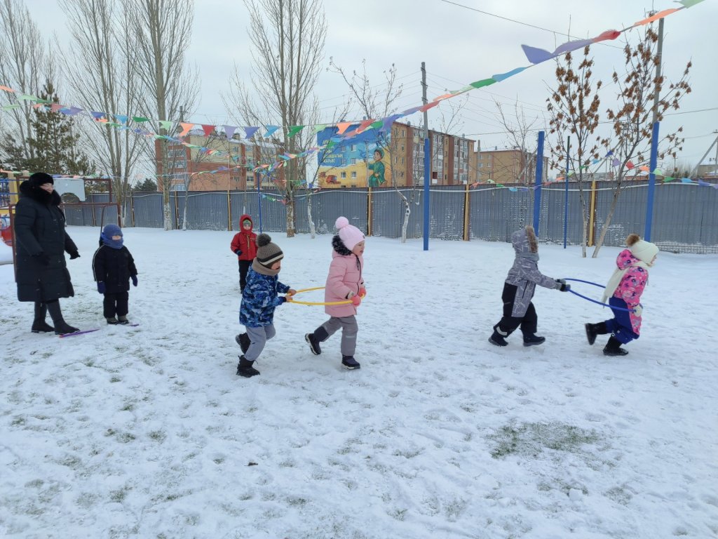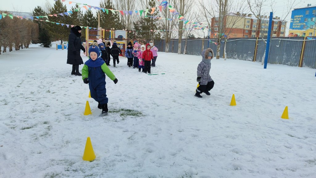 Балалар спорттық тапсырмаларды үлкен қуанышпен орындады:эстафеталық таяқшаны бір-біріне тапсырды, «өткелден» екінші жаққа өтті, ирелеңдеп жүгірді, «Қар жина» ойынын қызыға ойнады.Эстафеталар балаларға көтеріңкі көңіл күй, сергектік пен жағымды эмоциялар сыйлап қана қоймай, ептілікке, жылдамдыққа және топпен жұмыс істеу дағдыларының дамуына ықпал етті