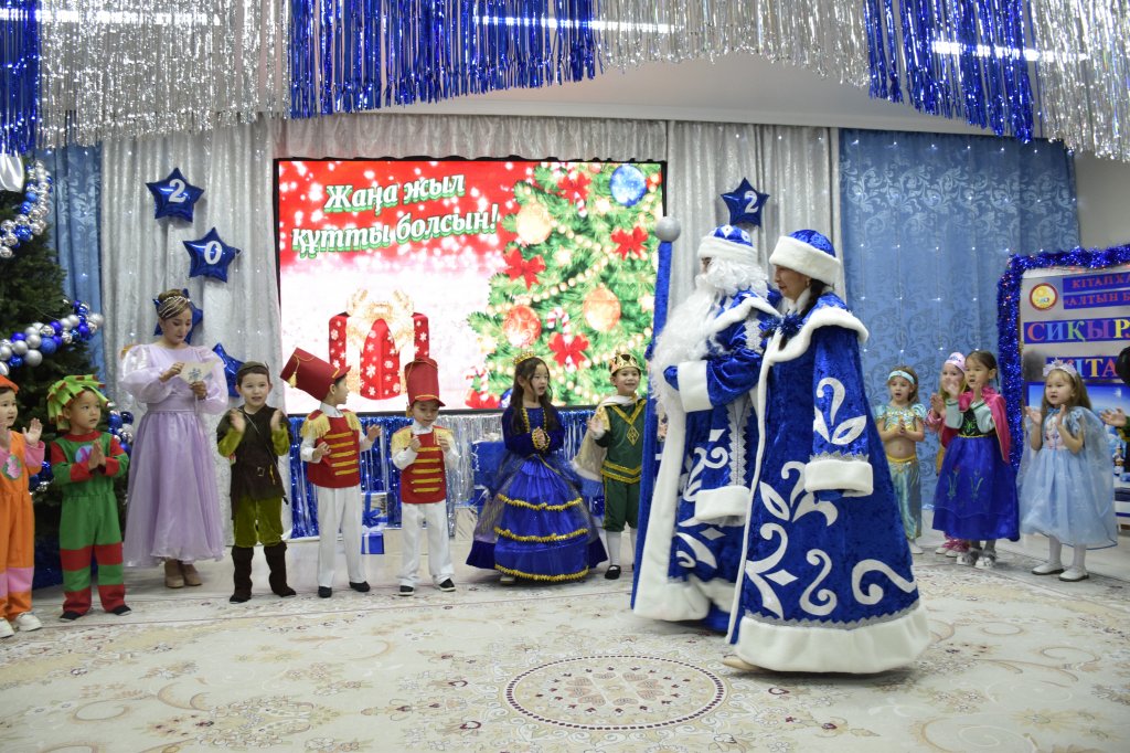 Жаңа жылды Сиқыршы,Перизат,Аяз ата,Ақшақармен түрлі ойындар ойнап, тапсырмалар орындап,би билеп,өлең айтып,қуаныш пен шаттыққа бөленді .