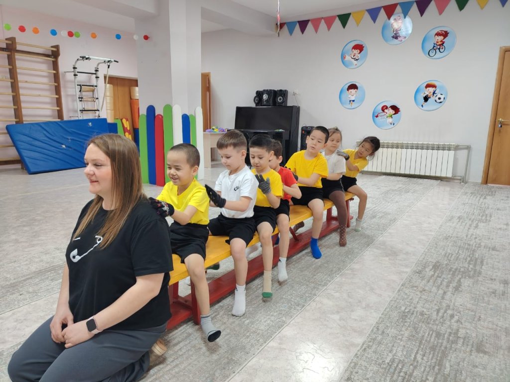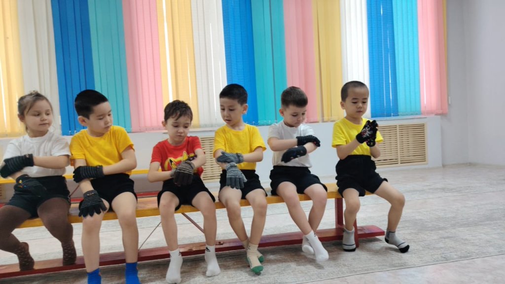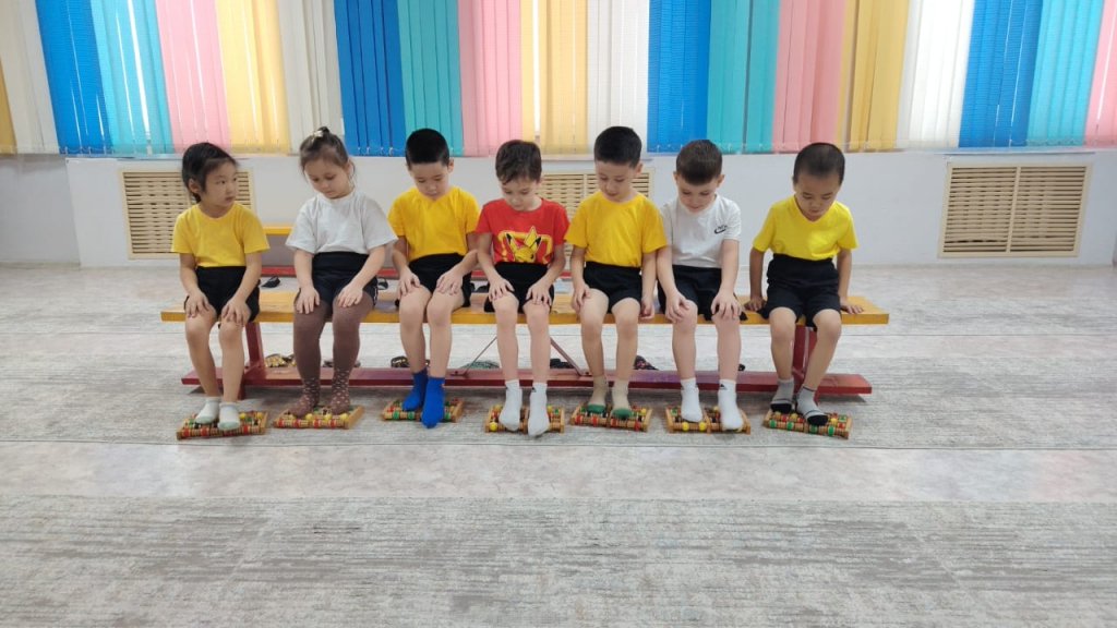 Балалар аяққа арналған жаттығу тренажёрімен жаттығуларды үлкен қызығушылықпен орындады, қан айналымын жақсарту үшін массаж қолғаптарын қолданды және жан дүниені тыныштандырып, өзін жақсы сезінуге арналған тыныс алу гимнастикасын меңгерді