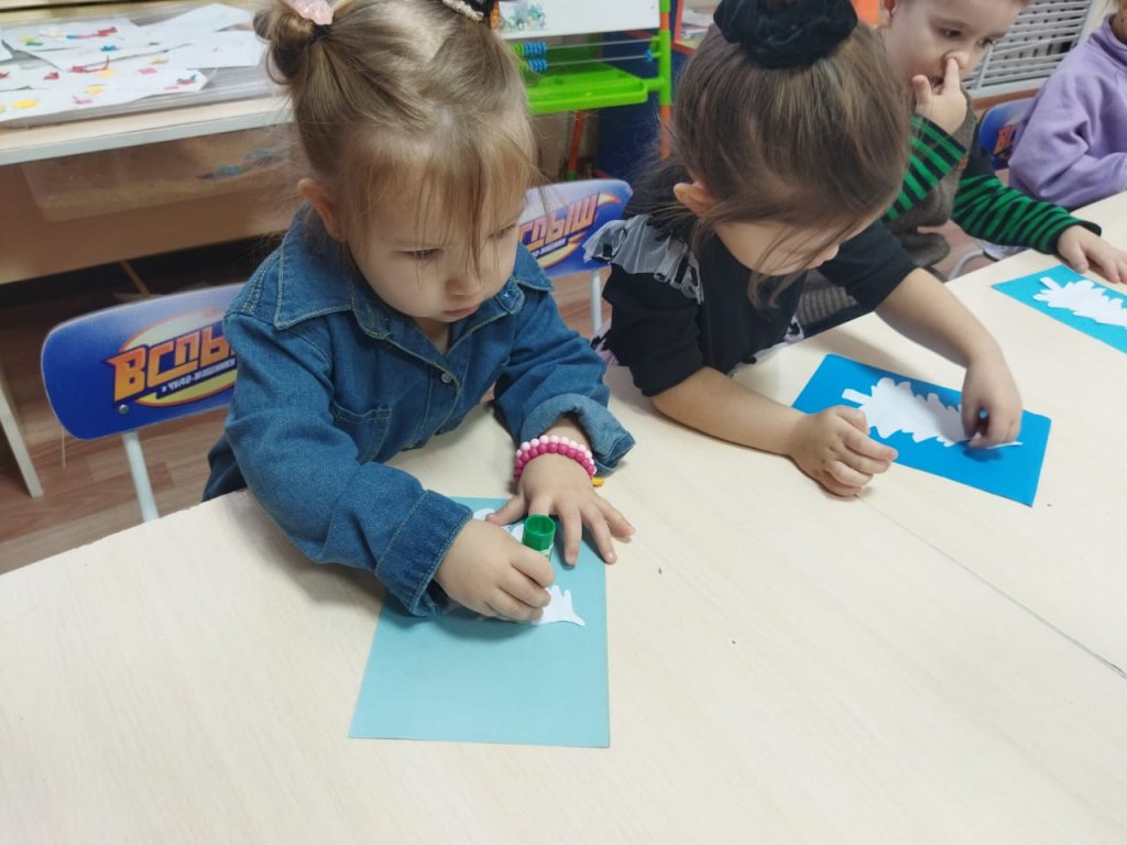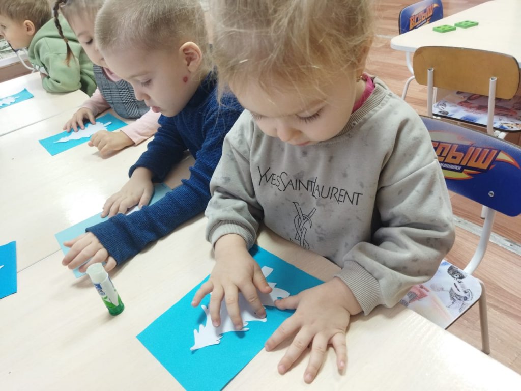 Олар ақ шыршаларды жапсырып, бар күшін салып, өз жұмыстарын қуана тамашалады.