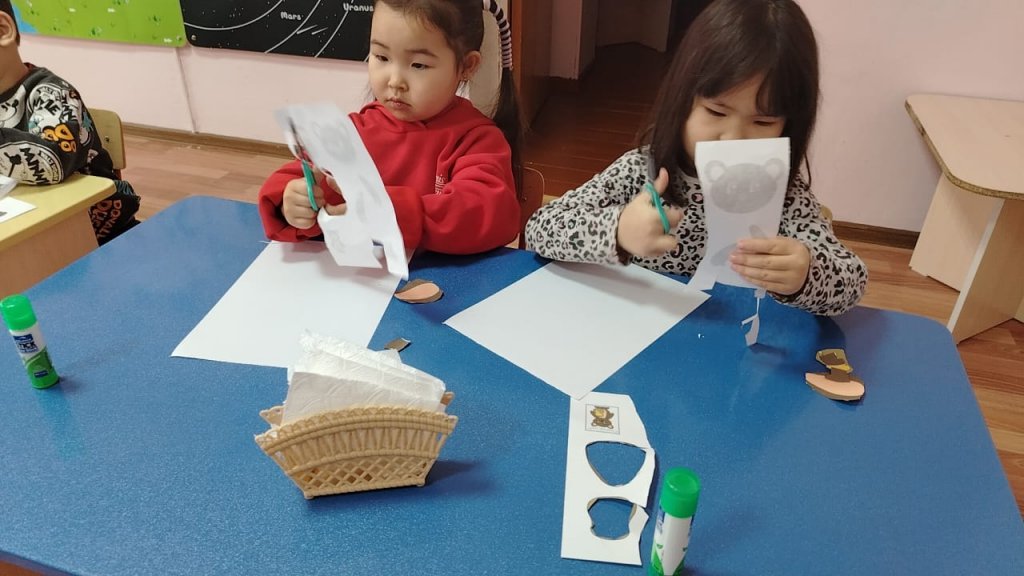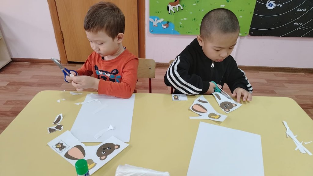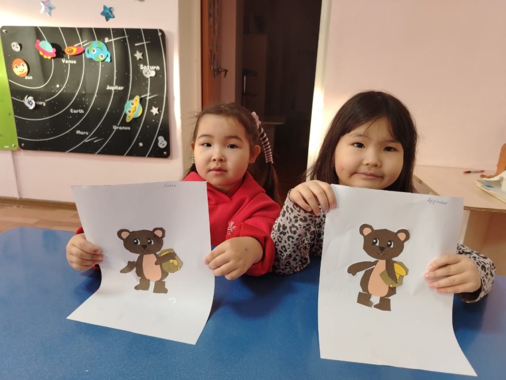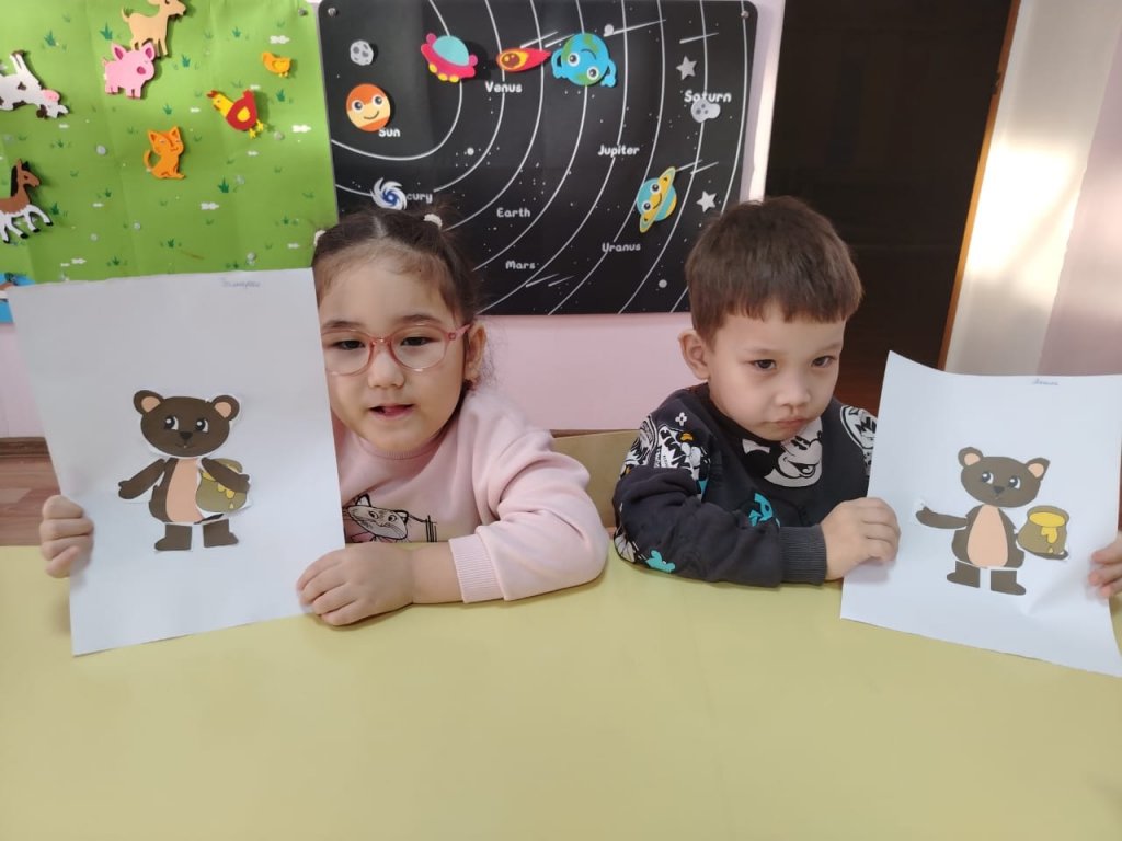 С детьми группы «Қарлығаш» было проведено занятие по теме «Друзья Медвежонка».