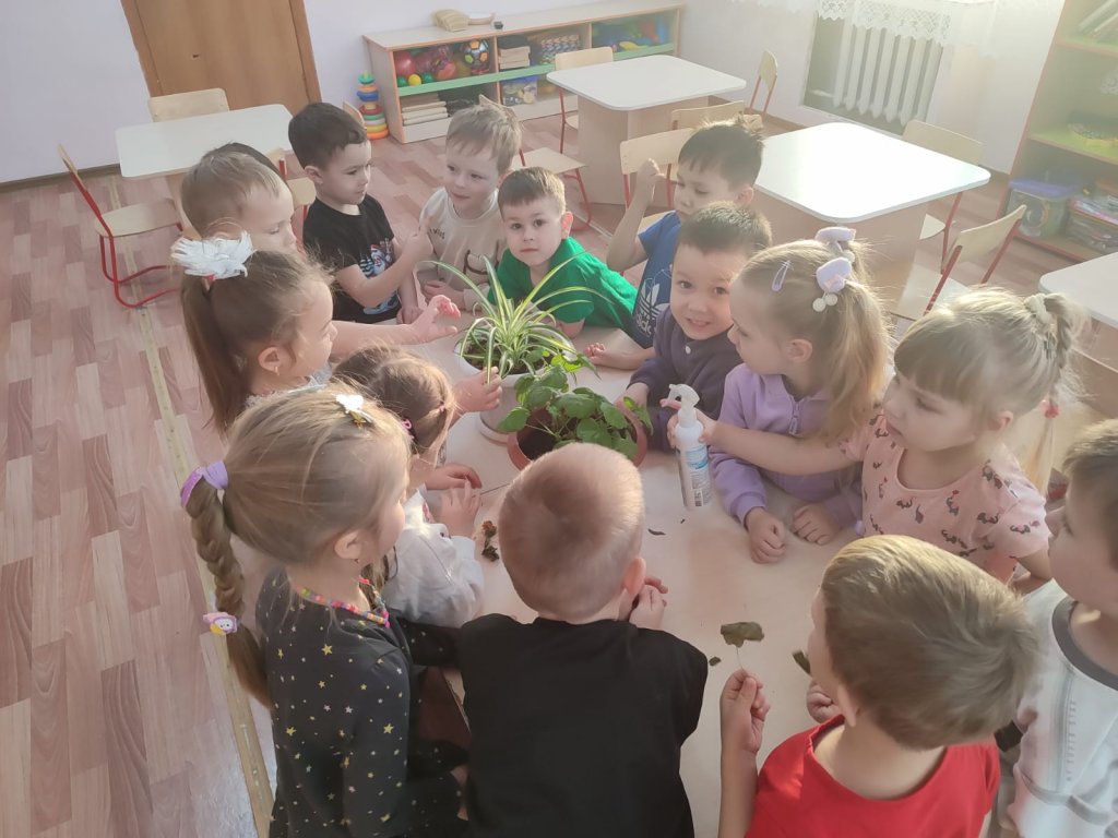 Балалар өсімдіктерді таза ұстау жолдарын еске түсіріп, жапырақтарының сыртқы көрінісі мен құрылымына қарай шаңды тазалаудың тиімді тәсілін таңдауды үйренді. Сондай-ақ бөлме өсімдіктерінің ауаны тазартуда және бөлмеде сау атмосфера қалыптастырудағы маңызды рөлі туралы әңгімелестік.