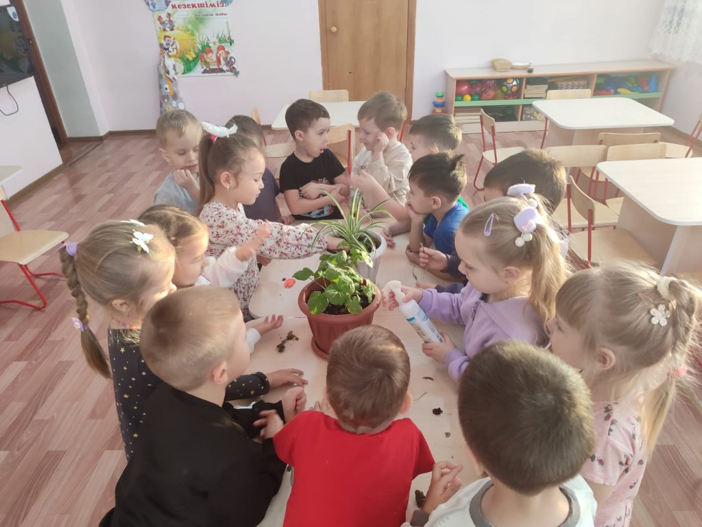 Балалар өсімдіктерге үлкен қызығушылықпен және қуанышпен күтім жасап, қамқорлық пен жауапкершілік танытты. Мұндай іс-әрекеттер балалардың экологиялық мәдениетін қалыптастырып, табиғатқа деген сүйіспеншілігін және қоршаған ортаға ұқыпты қарым-қатынасын дамытады.