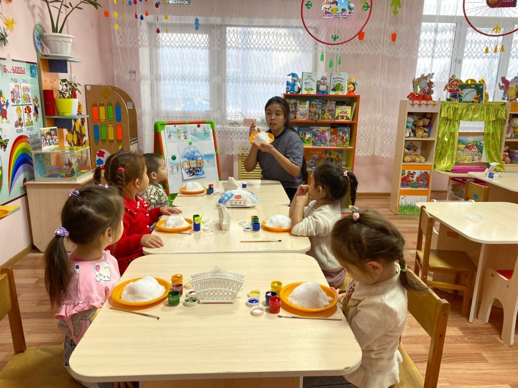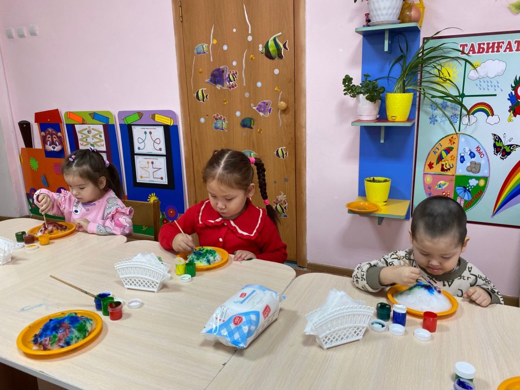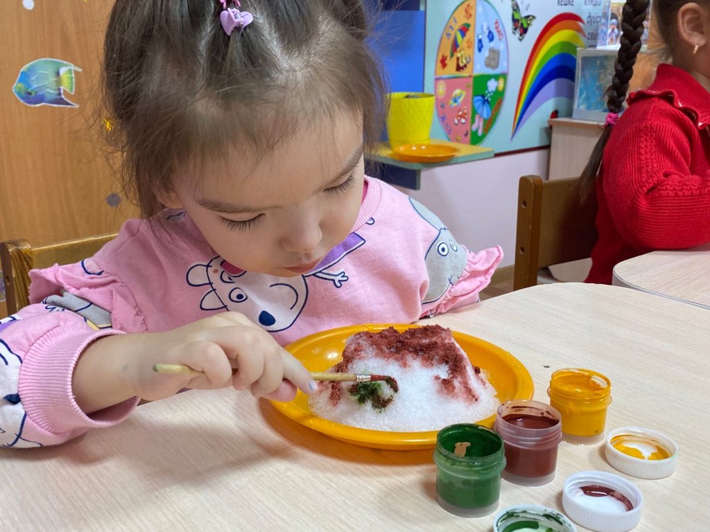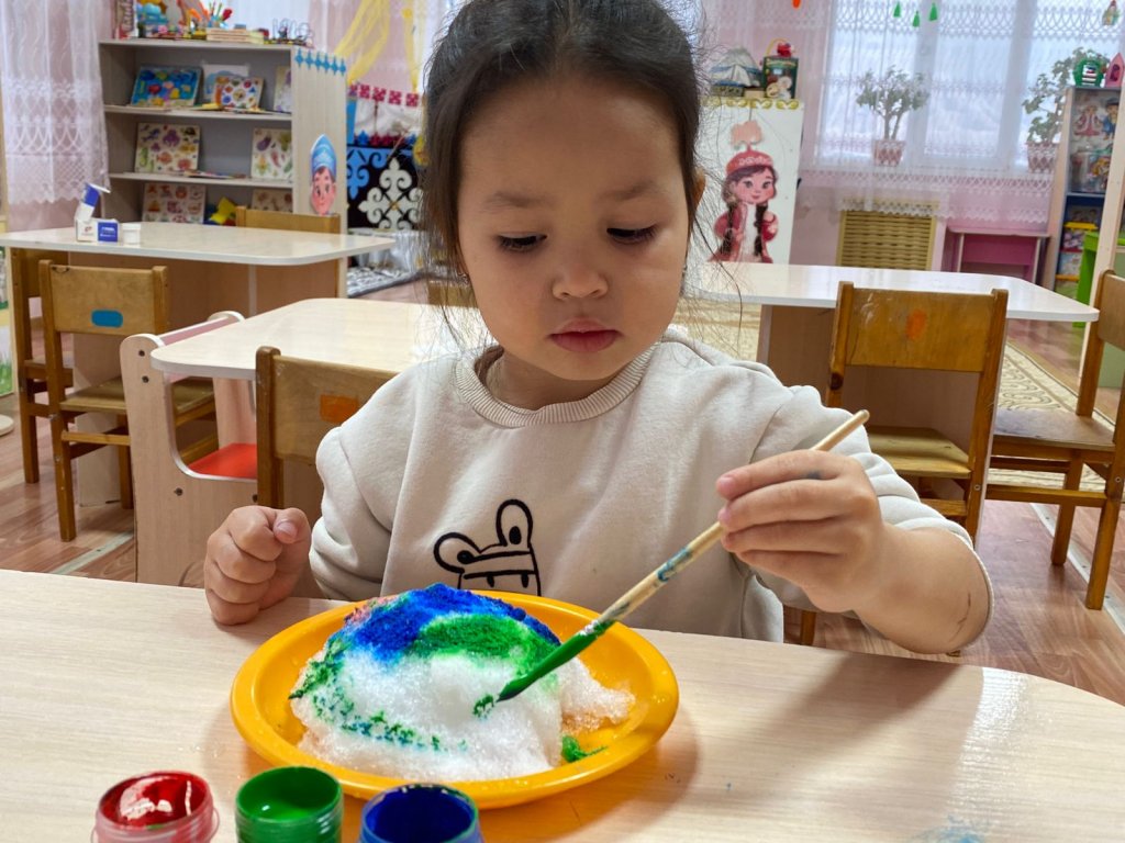 Балаларға қары табиғи құбылыс ретінде таныстыру және қарды түрлі түстерге бояу арқылы дәстүрлі емес сурет салу тәсілдері арқылы шығармашылық қабілеттерін дамыту.Қиял мен көркем-шығармашылық ойлауды дамыту;балаларды түспен тәжірибе жасауға, бояуларды араластыруға үйрету;түстер туралы білімді бекіту;ұсақ қол бұлшықеттерін дамыту; бейнелеу өнеріне қызығушылықты қалыптастыру және жұмыста ұқыптылықты тәрбиелеу;сурет салу процесі мен қармен эксперимент жасаудан жағымды эмоциялар туғызу.