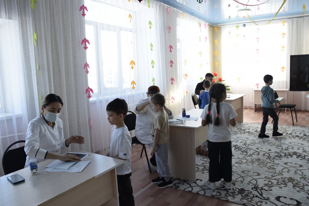 Жұмысқа мамандар қатысты: Бейсенбекова Д.И. – лаборант, Жанулина А.А. – офтальмолог, Панасюра С.А. – ЛОР, Конарева П.М. – стоматолог, Рамазанова Б.М. – балалар хирургi, Ғабсалық М. – педиатр. Тексеру балалардың денсаулығын бақылауға және мүмкін болатын мәселелерді уақтылы анықтауға мүмкіндік берді.
