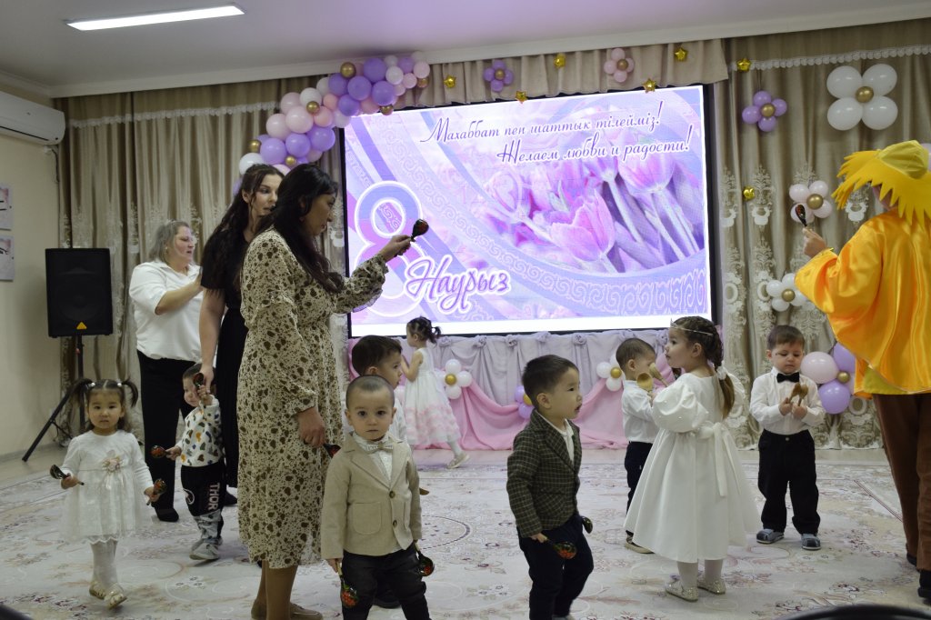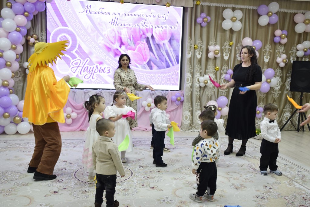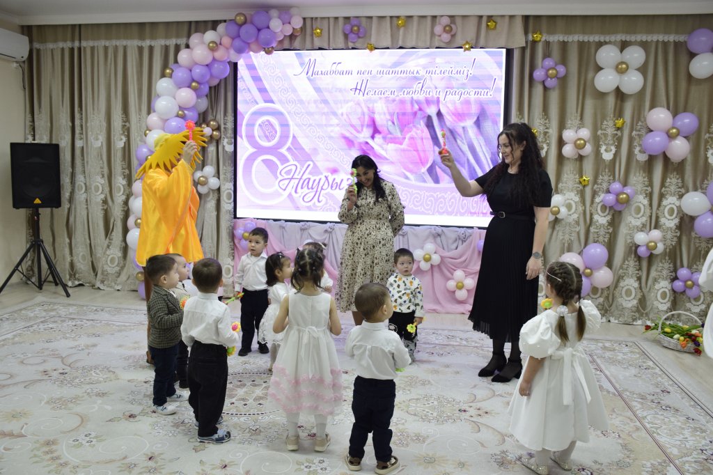 Ертеңгілікте балалар аналары туралы махаббатпен ән айтып, қонақтарды өз өнерлерімен қуантты. Балаларға көңілді Күн шуағы келіп, онымен бірге олар ойнап, сүйікті аналарына әдемі тюльпан гүлдерін жинады. Мереке жарқын әрі көңілді өтті — балалар қызықтырғыштармен, қасықтармен және орамалдармен би билеп, залды жылылық пен күлкіге толтырды.