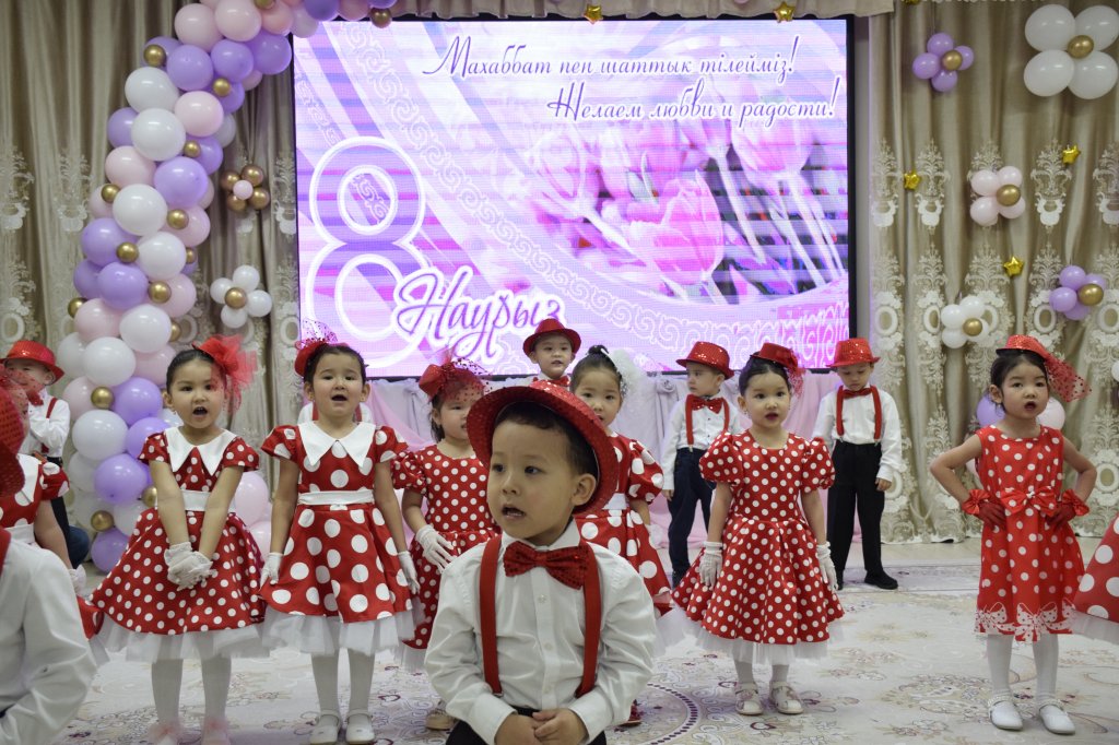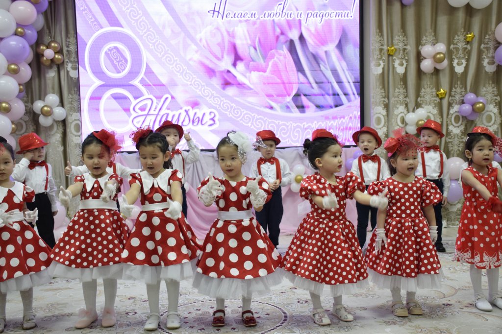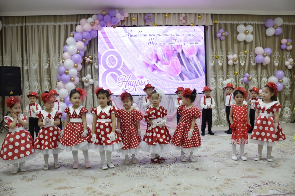 Бүлдіршіндеріміз аяулы аналары мен ардақты әжелеріне арнап ән айтып, би билеп, жүрекжарды тақпақтарын тарту етті. Көктемнің шуақты мерекесі мейірім мен қуанышқа, шынайы күлкі мен жылы лебізге толы болды.