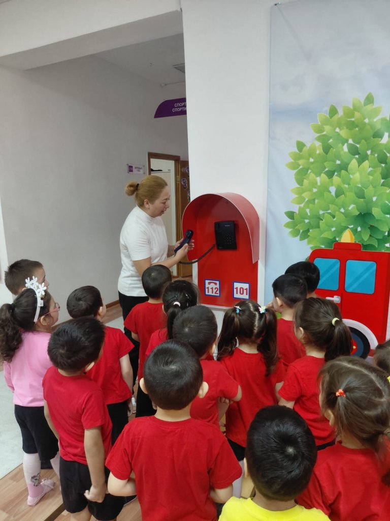 Іс-әрекет барысында балаларға өрт кезінде өзін дұрыс ұстау, үлкендерге хабар беру, қауіпті жағдайдан сақтану жолдары түсіндірілді. Сонымен қатар, балалар «өрт сөндіруші» мамандығының маңыздылығы, олардың батылдығы мен жауапкершілігі туралы білді. Қызықты ойындар мен көрнекі материалдар арқылы балалар өрт сөндірушілердің арнайы киімдері мен құрал-жабдықтарымен танысты.