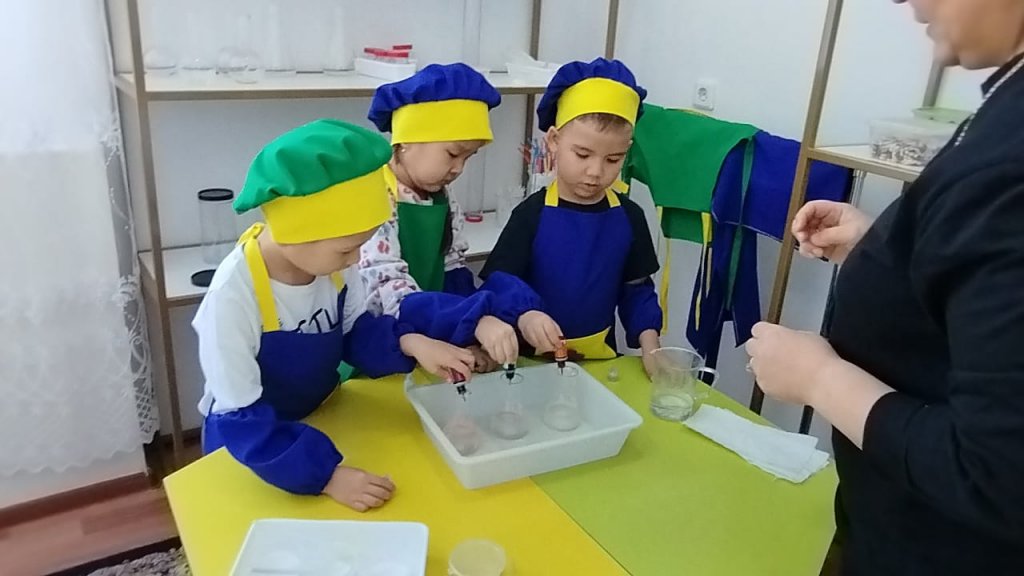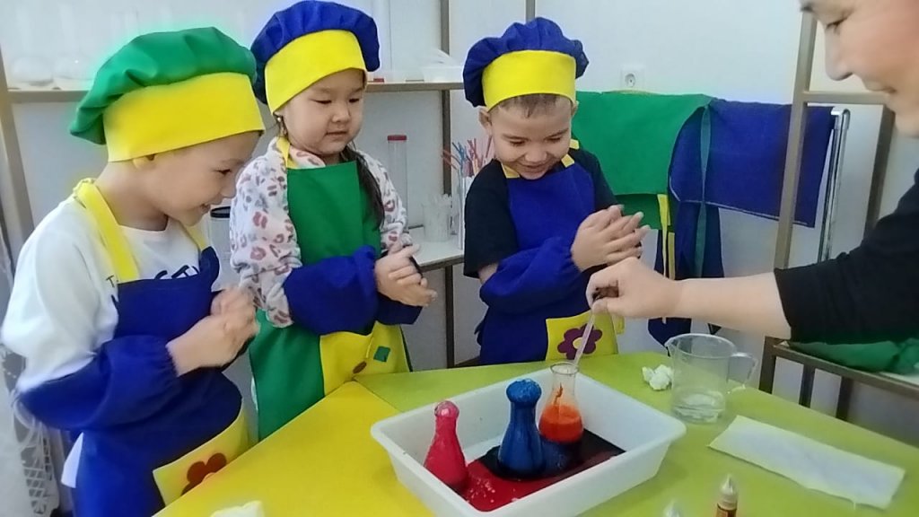 Балалар тәжірибе жасап, өз көздерімен реакциясының қалай болатынын көріп, қатты қуанды. Мектепалды "Ақ бұлақ" тобы