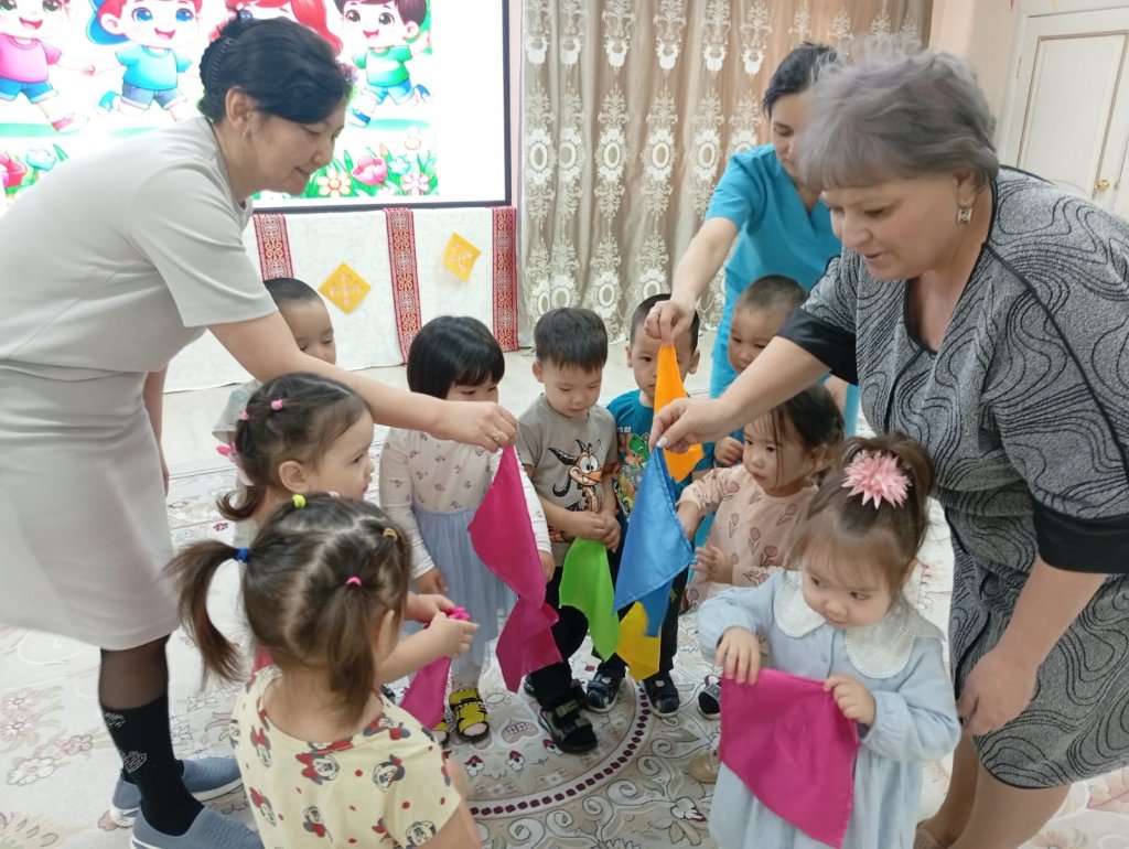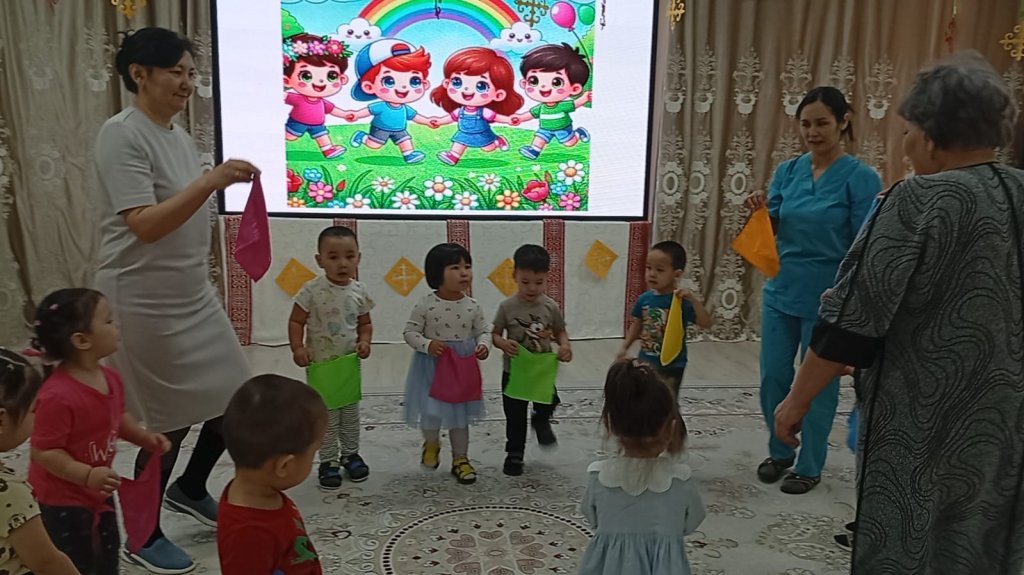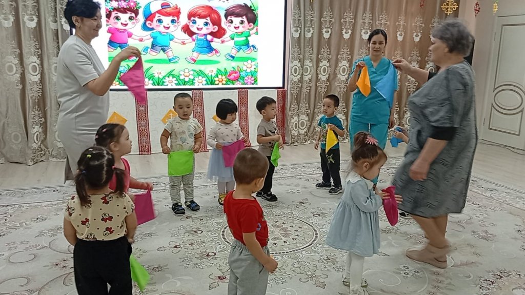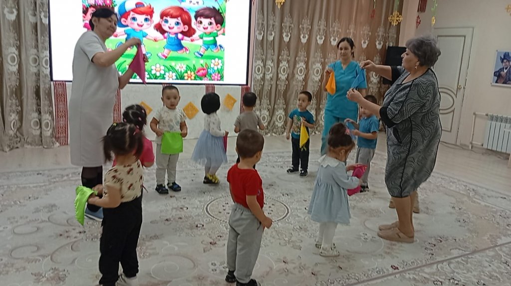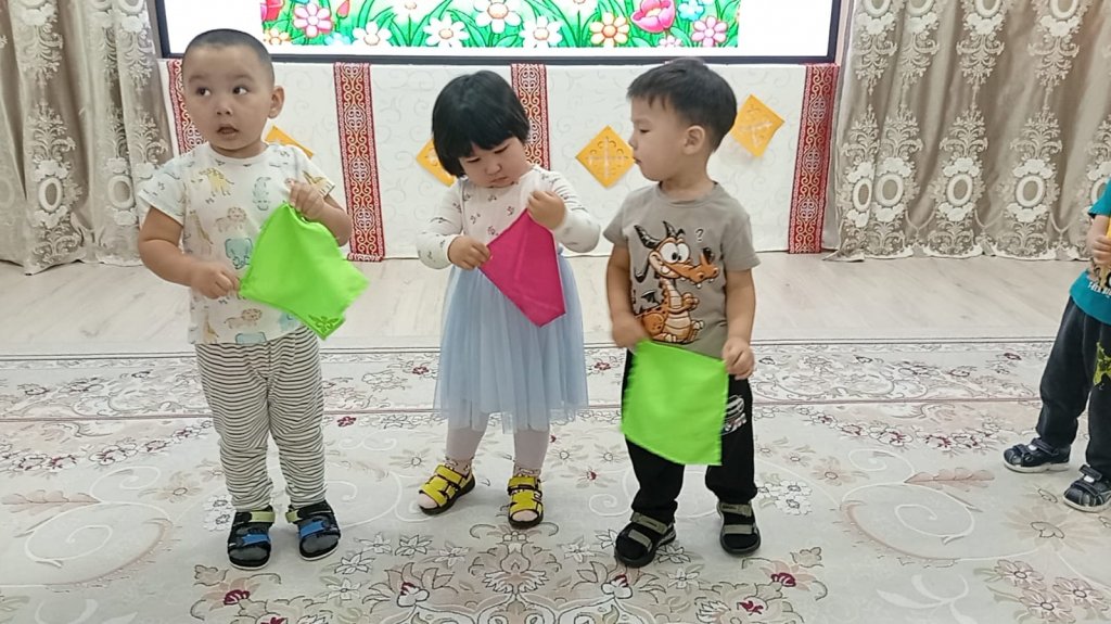 Қарапайым қимылдар, ойын бейнелері және музыка арқылы бүлдіршіндер көңіл күйді жеткізуді, ұжымда жұмыс істеуді және шығармашылық қабілеттерін көрсетуді үйренеді.