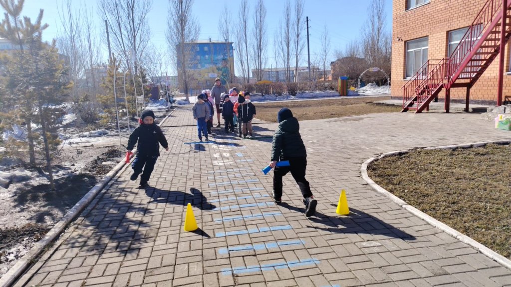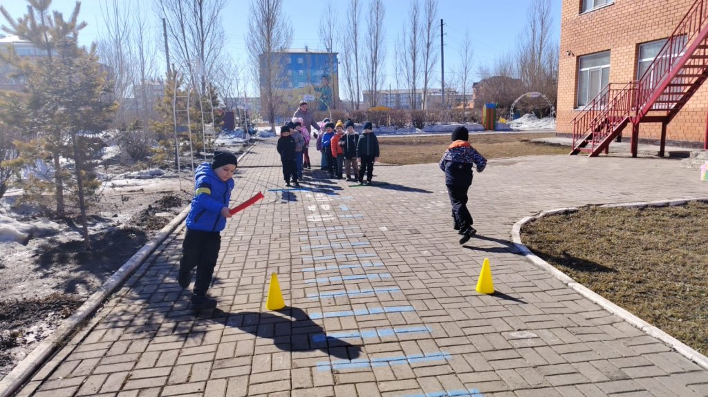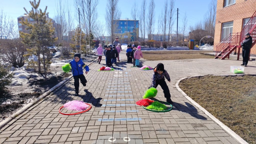 «Эстафеталық таяқшаны бер» , «Көңілді құрсау» , «Автомобильдер ойыны» , «Кім жылдам», «Арқан тарту».Балалар ептіліктерін, жылдамдықтарын, командалық рухтарын және көтеріңкі көңіл күйлерін көрсетті!