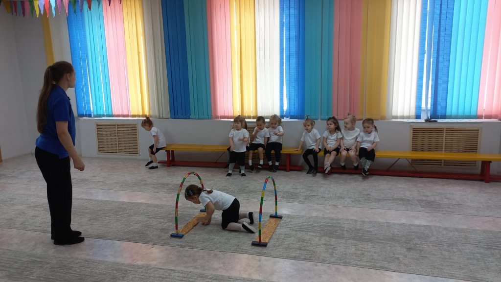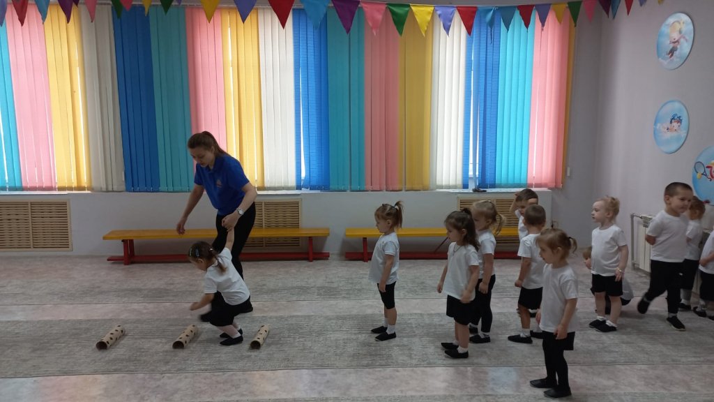 Іс-шара ойын түрінде ұйымдастырылып, бүлдіршіндерге уақытты қызықты әрі белсенді өткізуге мүмкіндік берді. Балалар шағын «саяхатқа» аттанып, қарапайым жаттығулар орындады: жолақпен жүрді, доғаның астынан еңбектеп өтті және доптармен ойнады.