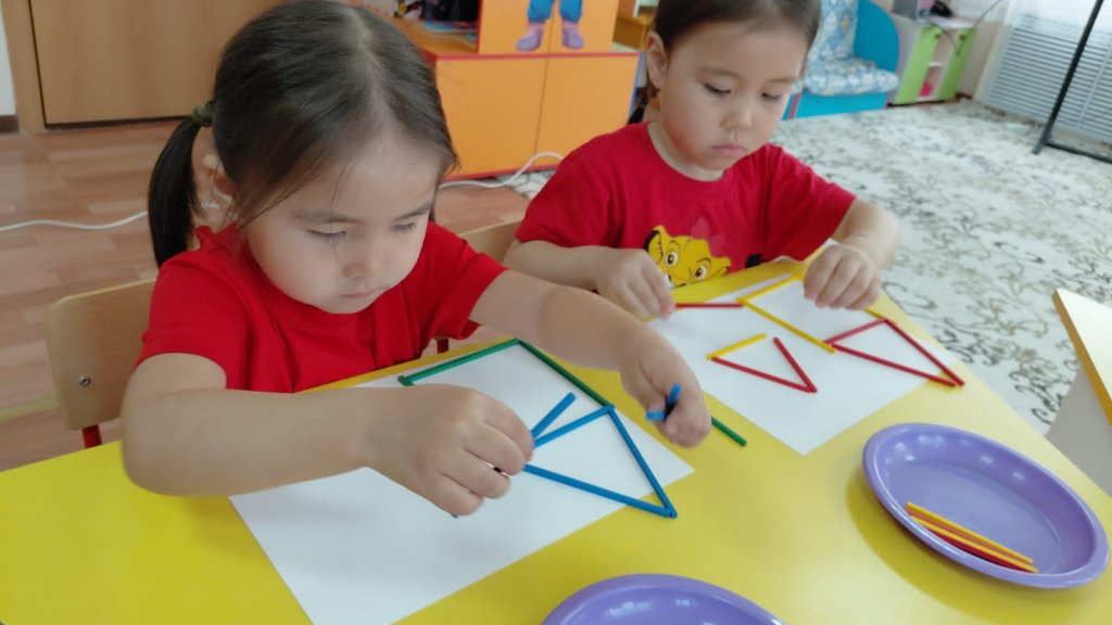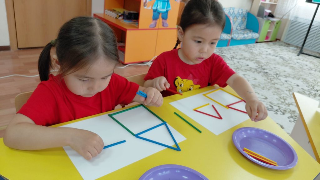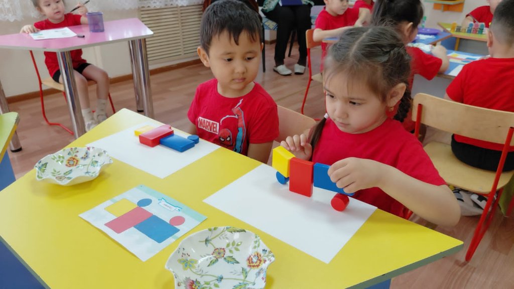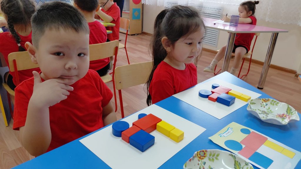 Балалар пішіндерді танып, оларды біріктіру арқылы жаңа бейнелер құрастырады.Бұл олардың ойлау қабілетін және қиялын дамыту.Ойын арқылы балалар пішіндерді оңай әрі қызықты түрде үйренеді.