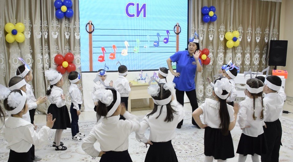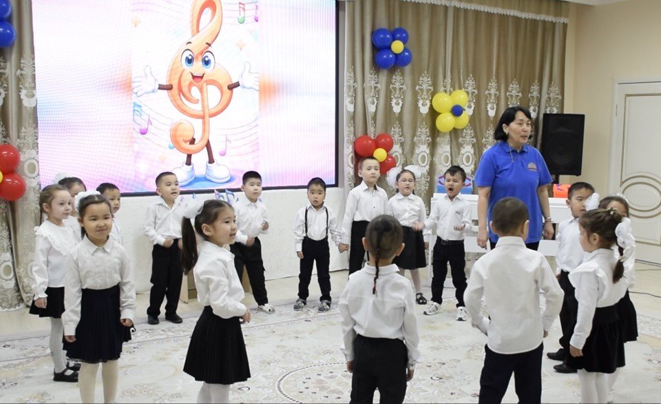 Тәрбиеленушілер ырғақты пойыздың жолаушылары рөлінде қызықты саяхатқа аттанды. Музыкалық карта бойынша жүріп отырып, балалар барлық тапсырмаларды сәтті орындап, жоғалған ноталарды ноталық сызыққа қайта орналастыруға көмектесті.