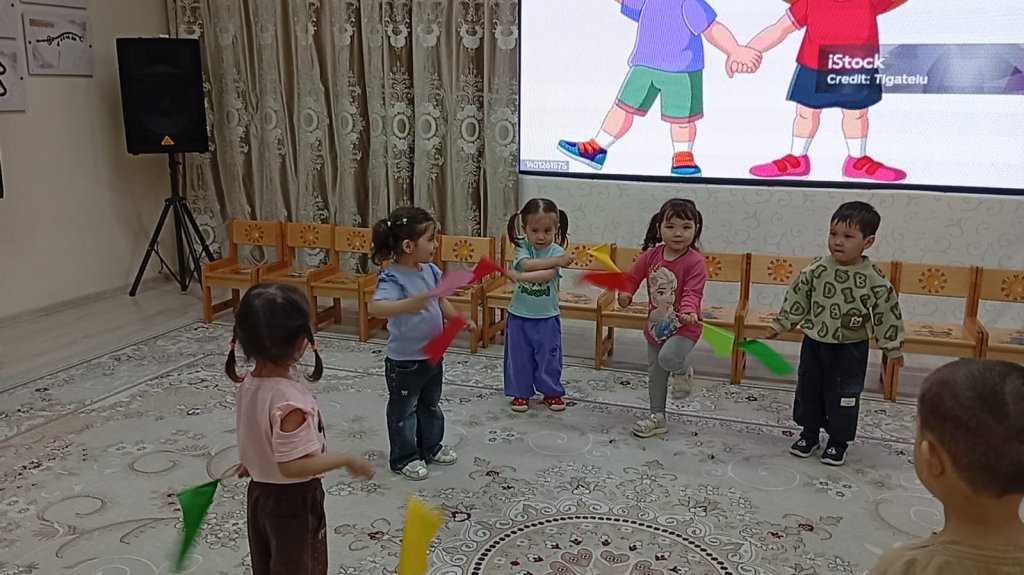 Сабақтар ойын түрінде өтеді, бұл балалардың көңіл-күйін көтеріп, барлық тәрбиеленушілердің белсенді қатысуына ықпал етеді.